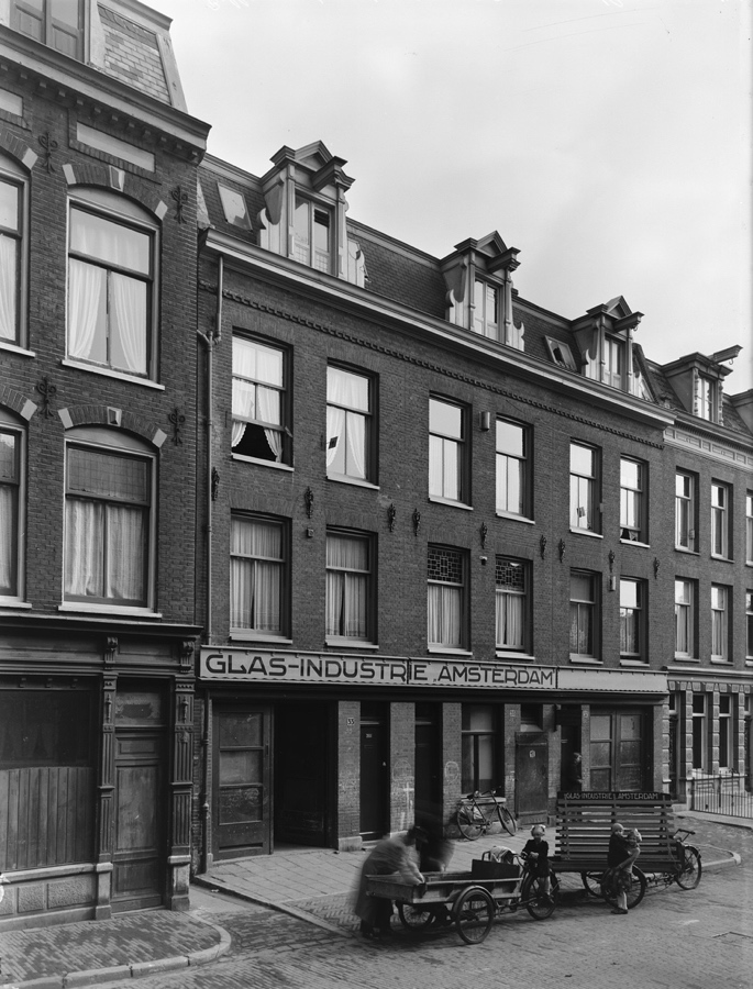 De panden zijn in 1895 ontworpen door en voor H. van Tellingen. Op de begane grond van huisnummer 37 werd een smederij gevestigd. De huisnummers 33 en 35 hadden in z’n geheel een woonbestemming. In 1916 zijn de indelingen van 33 en 35 gewijzigd zodat de verdiepingen afzonderlijk verhuurd konden worden. De bedrijfsruimte op nummer 37-H heeft zich stapsgewijs uitgebreid over de nummers 33-H en 35-H, alsmede over het achterterrein. Op de lokatie zijn in de loop van de jaren diverse bedrijven gevestigd geweest, waaronder: chemische wasserij/stomerij; timmerwerkplaats; glasfabriek; autoreparatiebedrijf; houtmeubelfabriek; galvaniseerinrichting; meubelmakerij; danszaal en metaalwarenfabriek. De activiteiten hebben aanzienlijke verontreiniging van de grond veroorzaakt. De panden zijn gebouwd op het oude polderniveau, Het niveau van de begane grond ligt dus lager dan het huidige straatniveau. Op 35-H bevindt zich aan de straat een voormalige trafo-ruimte van het GEB. Hierdoor heeft de bedrijfsruimte op dit nummer geen eigen entree.
