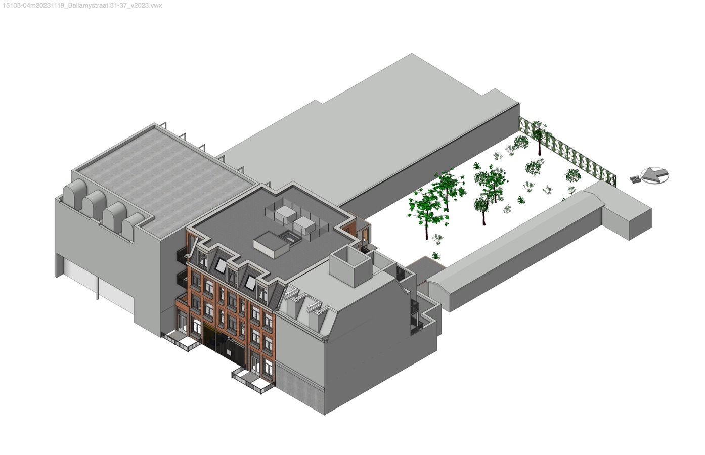 Het project betreft drie panden met 6 woningen en 2 bedrijfsruimten in stadsdeel West.