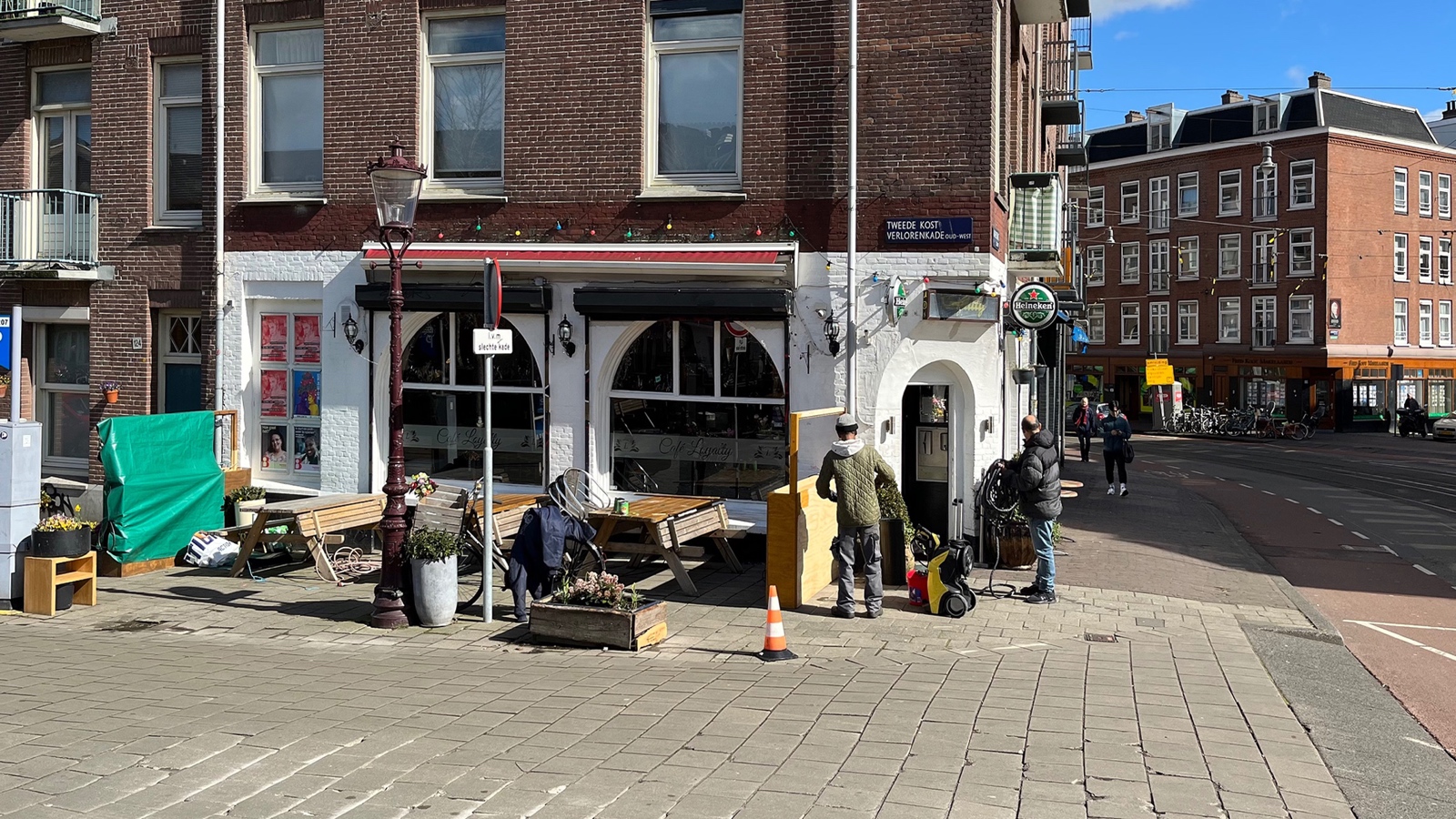 Alle buitenkozijnen, met uitzondering van de reeds vernieuwde kozijnen, worden vervangen door houten exemplaren. De kozijnen aan de straat krijgen een indeling en roeden als de originele kozijnen. De topgevels van Kinkerstraat 382 en 384 worden opgemetseld conform de huidige topgevel aan de Tweede Kostverlorenkade 123. De kozijnen van het café worden afgewerkt in een kleur die gereconstrueerd is aan de hand van verfresten en de foto uit 1937.
