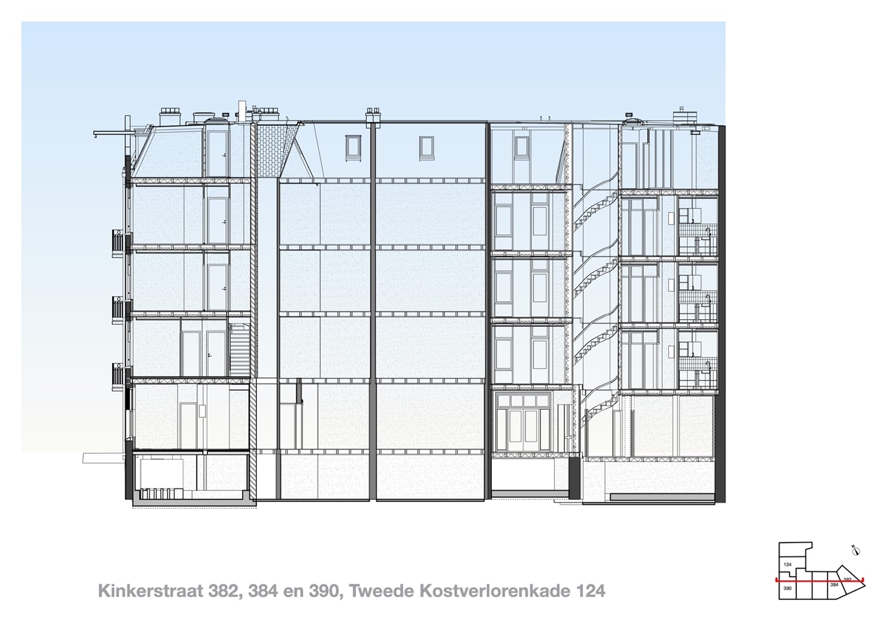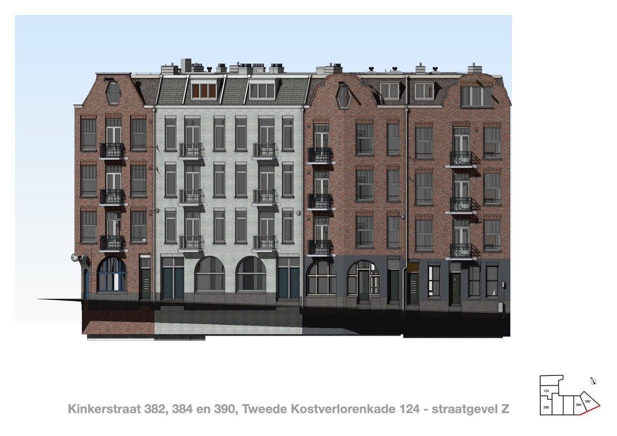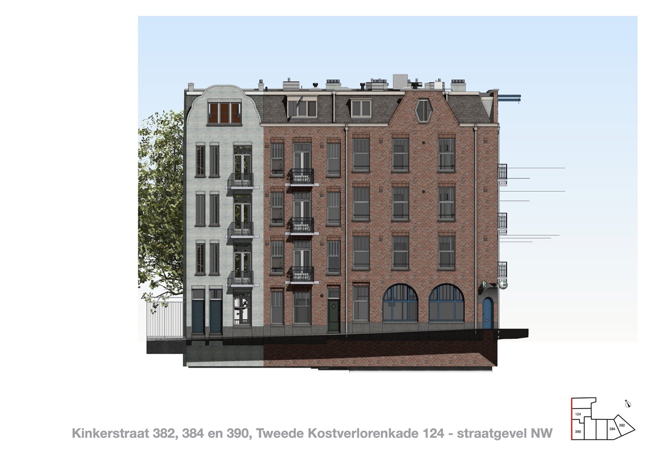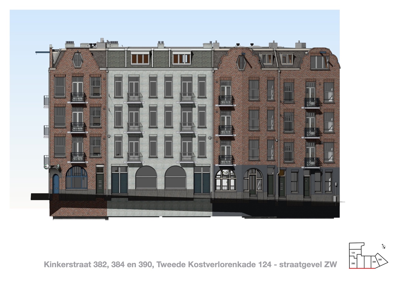 Het project betreft de renovatie van vier panden in stadsdeel West op de adressen Kinkerstraat 382, 384 en 390 en Tweede Kostverlorenkade 124.
