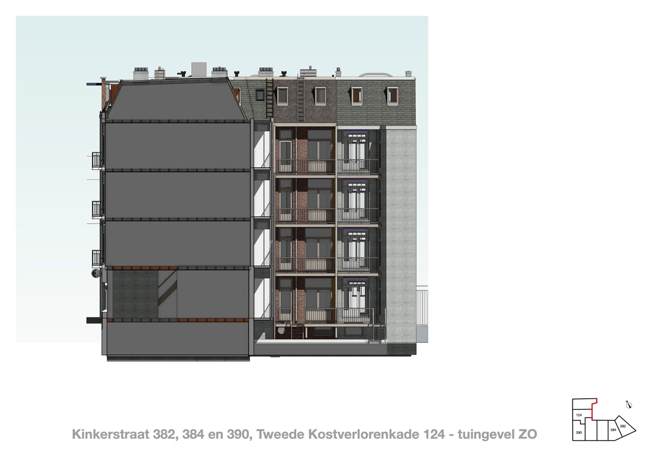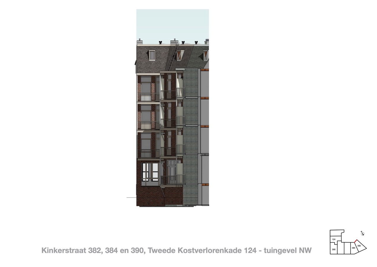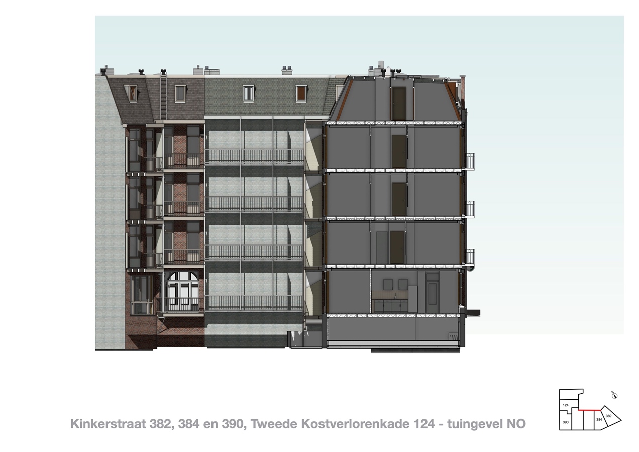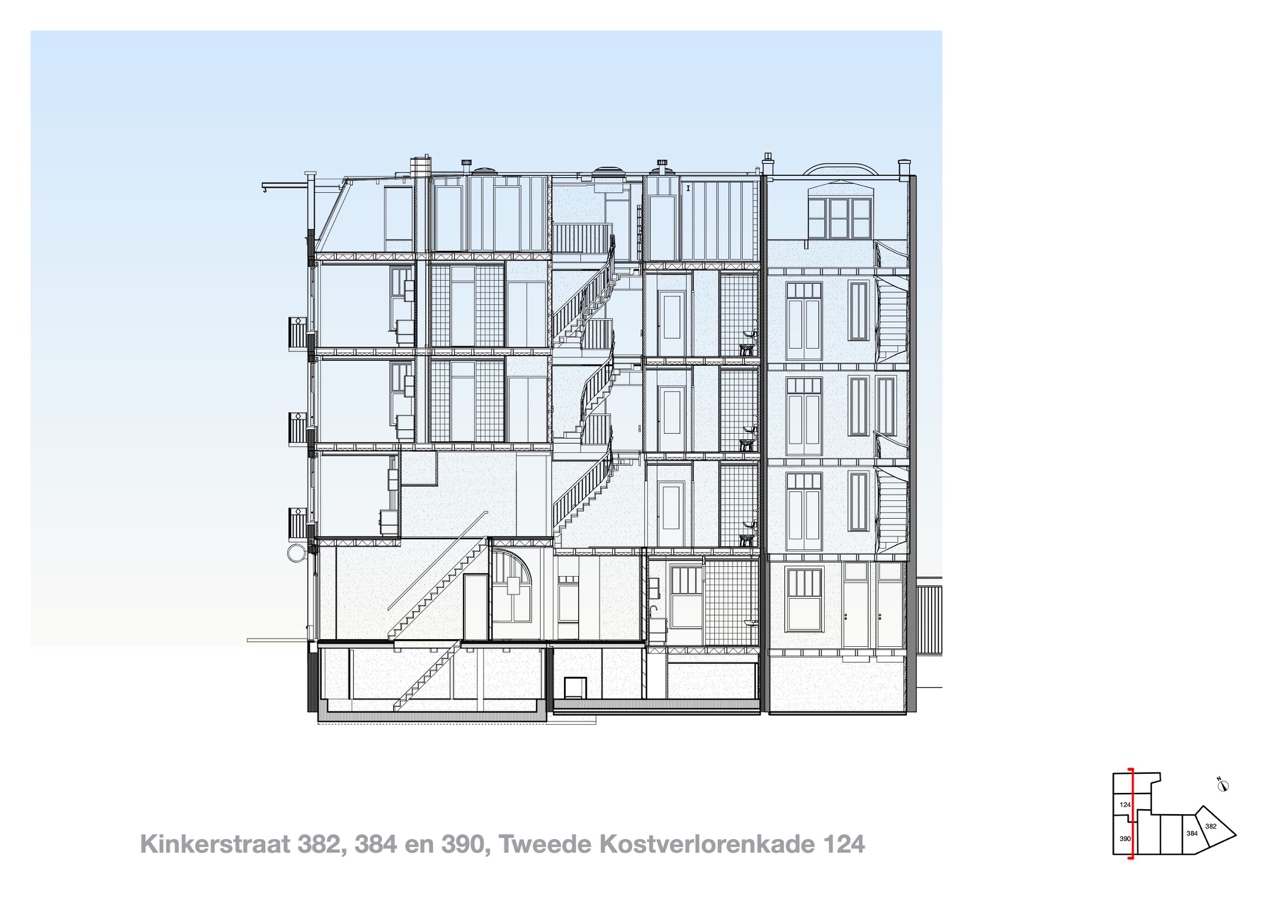 Het project betreft de renovatie van vier panden in stadsdeel West op de adressen Kinkerstraat 382, 384 en 390 en Tweede Kostverlorenkade 124.